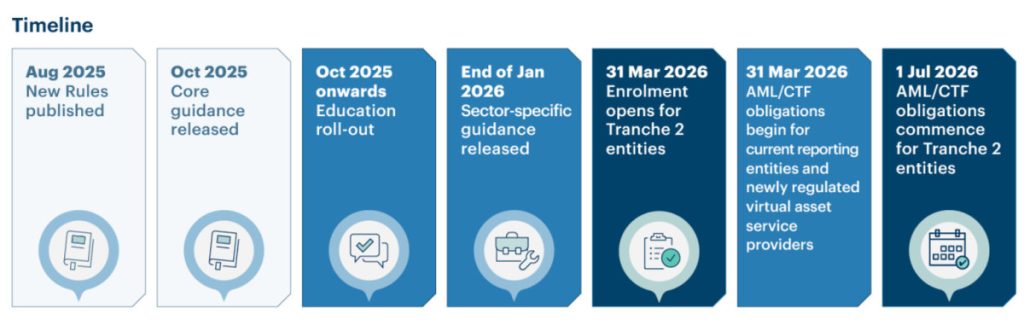 For existing reporting entities, however, the first milestone arrives much sooner: 31 March 2026, when the expanded AML/CTF obligations begin under the reformed regime for current AFSL and ACL licensees. According to AUSTRAC’s official reform roadmap, financial services licensees must use the lead‑up period to update their risk assessments, strengthen customer due diligence, and prepare for enhanced reporting and record‑keeping requirements. Recent enforcement actions, including substantial penalties issued to crypto ATM operators, highlight the regulator’s expectation that industry uplift occur well before the deadlines.